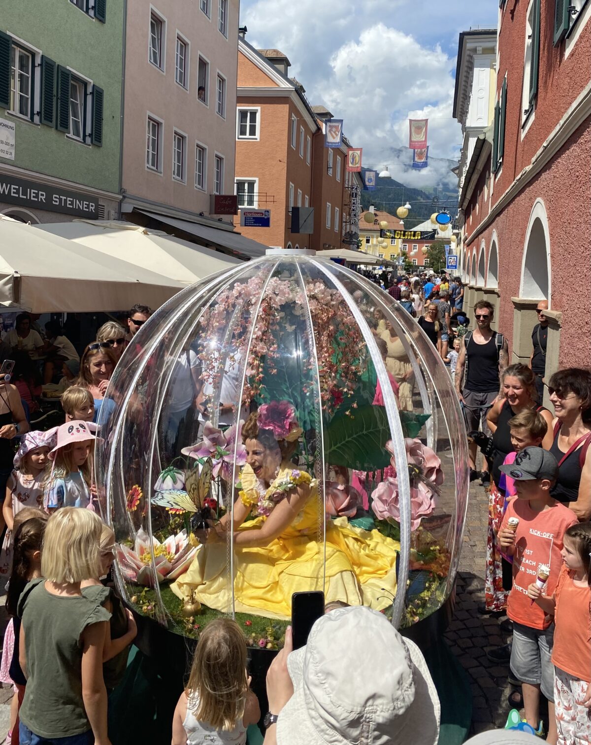 ,,Enchanted Flower Globe’’ to jedyne w swoim rodzaju, przepięknie iluminowane widowisko interaktywne brytyjskiej grupy The Show Globe. To tętniący życiem, baśniowy ogród zamknięty w mobilnej mikrosferze, pełen gigantycznych roślin i ukrytych wśród nich marionetkowych stworzeń.