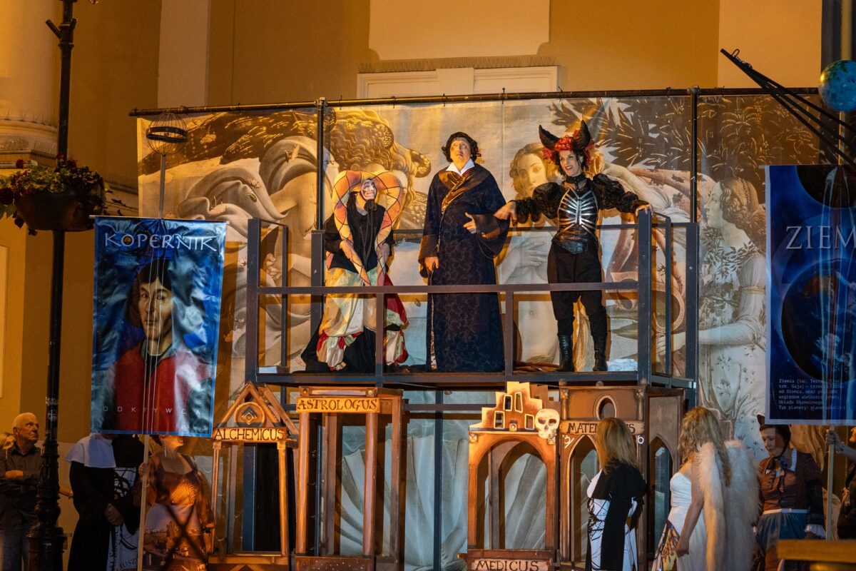 Spektakl jest poprzedzony paradą z Rynku Nowomiejskiego na Rynek Staromiejski, a właściwe widowisko zagrane zostanie w przestrzeni pomiędzy kościołem akademickim pw. Świętego Ducha a Ratuszem Staromiejskim. Mieszkańców miasta zapraszamy do parady, która będzie się formować na Rynku Nowomiejskim.